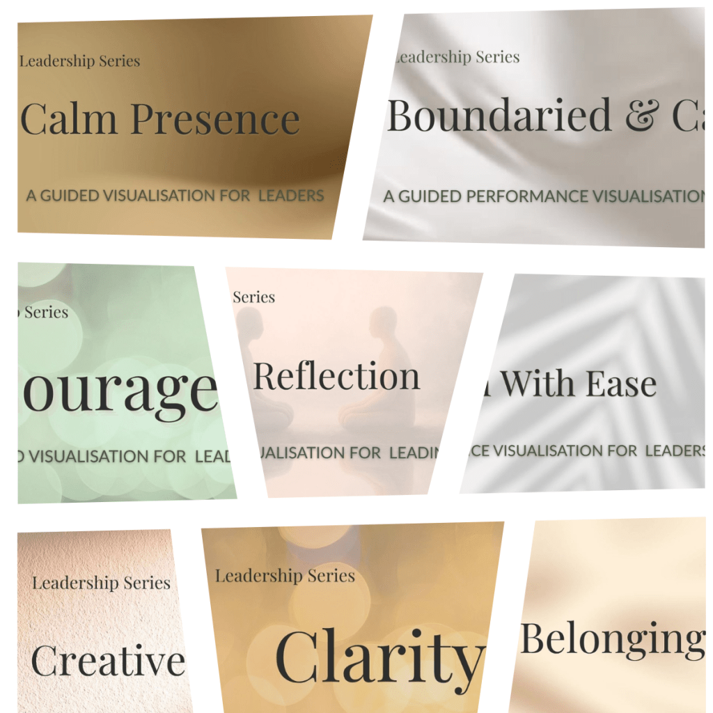 The series includes eight short visualisations (8–15 minutes each), designed to give you a felt sense of what breathwork, grounding, and embodied imagery can unlock when applied to leadership insight and performance planning.
